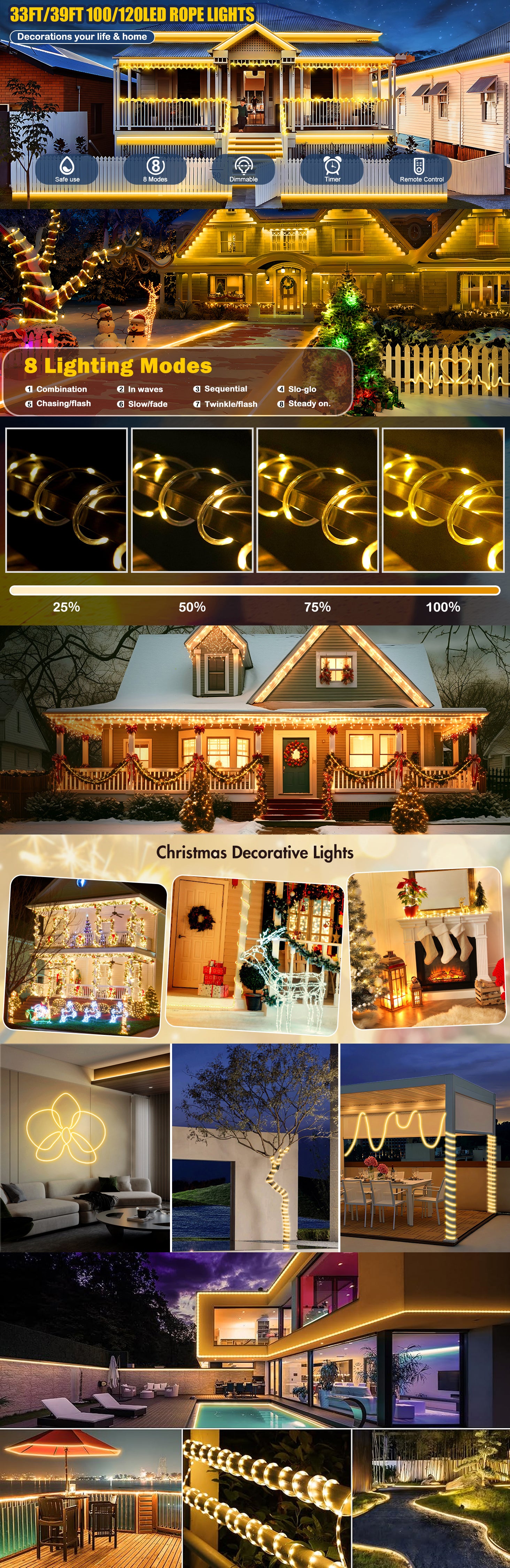 39FT Rope Lights Outdoor